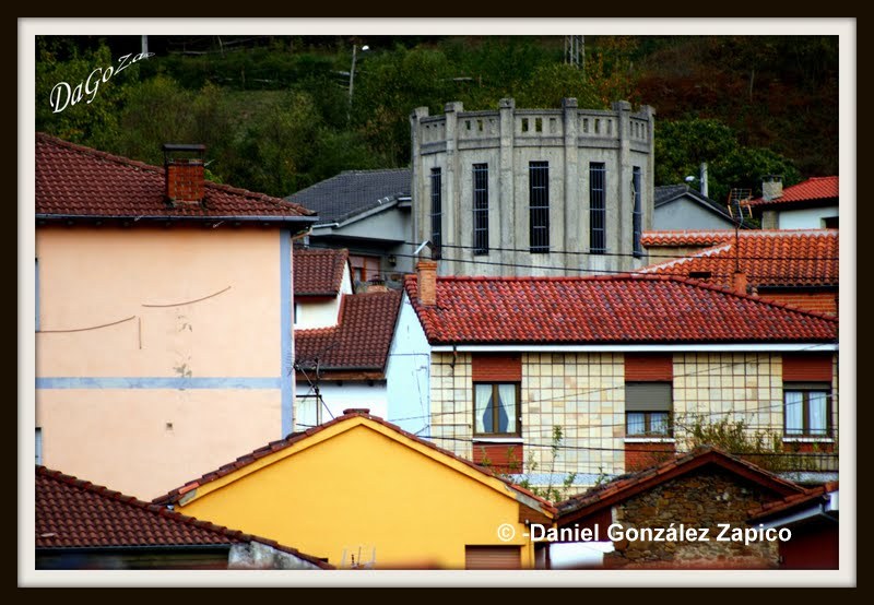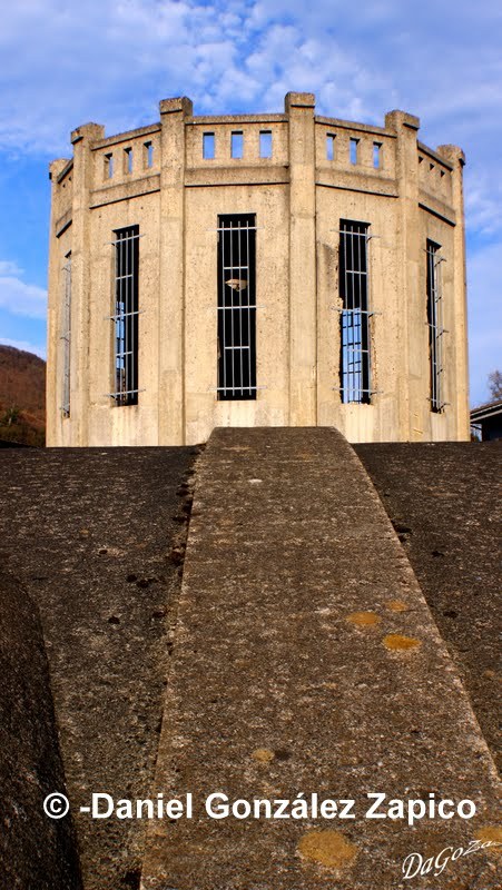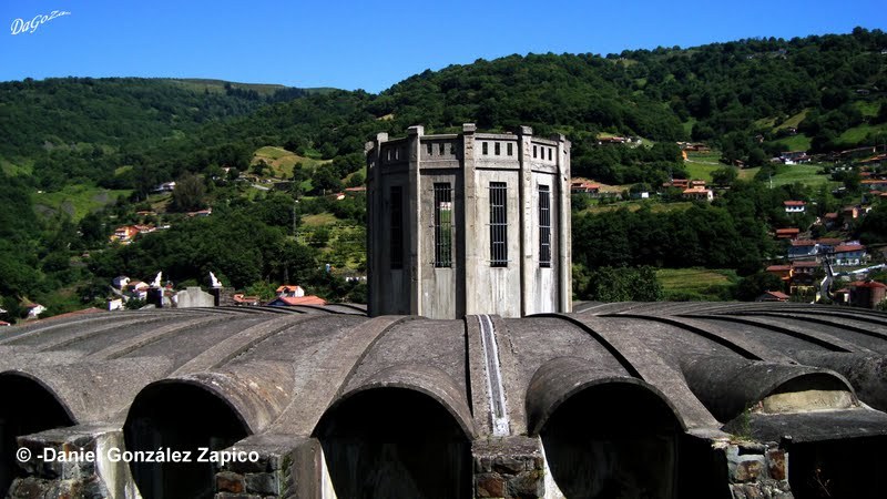 El depósito de Villapendi reina sobre el pueblo como uno de los emblemas importantes del patrimonio industrial del concejo. Su cuerpo central "aparaguado" y su torre central, como los de Trubia o de Pola de Siero, fue proyectado en 1926 para una capacidad de 5 millones de litros. Daniel González, nuestro colaborador, ha logrado un reportaje excepcional. Elegancia, fuerza, misterio ... mil facetas para reapropiarse de nuestro castillo de hormigón