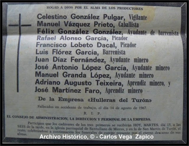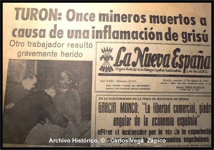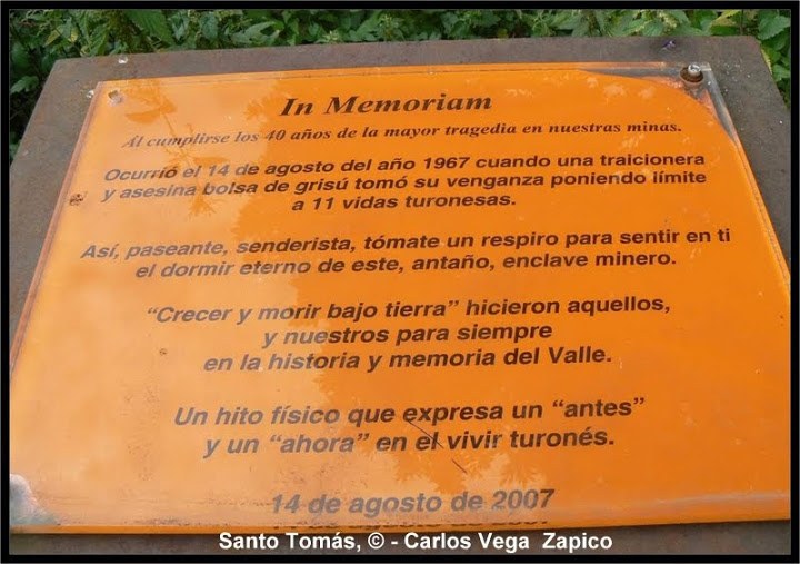 Han pasado 46 años desde aquella terrible explosión de grisú: 11 muertos y el cierre del grupo el mismo año 1967. Tan solo nos separan seis de aquel acto, coincidiendo con el 40º aniversario, celebrado en la misma bocamina del pozo para dejar constancia para las generaciones futuras de aquella enorme tragedia. El estado de la placa y su ubicación, recordatorios del alto precio pagado por el pueblo turonés a la industria minera, deshonran hoy la memoria. Y pensar que en muchos países aún siguen acicalando y honrando monumentos conmemorativos de grandes tragedias del carbón mucho más antiguas. Que éstas fotos de nuestro colaborador Carlos Vega no nos dejen indiferentes.
