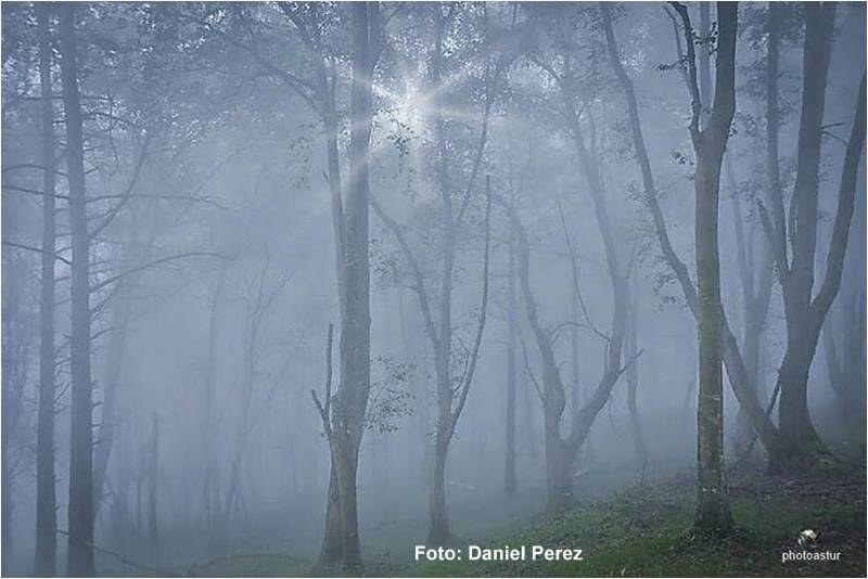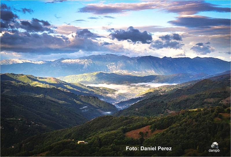 Es un valle apretado por sus propios montes, ofreciendo una larga mirada que rebota a ambos lados entre un Aramo, tantas veces blanco, y una Colladiella, recordatorio de lucha y de minería, abriendo nuevos espacios. Una anchura suficiente para una observación que siempre desmiente la rutina. Porque acompañar a Daniel Pérez no es solo recorrer lo que conocemos, entre vestigios del pasado y el palpitar de un presente complicado, sino elevar cada detalle a la altura de nuestra imaginación. No se trata pues de un frío reportaje notarial porque cada instantánea es una verdadera exhortación a la poesía. Los tiempos la reclaman.