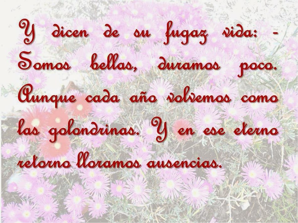 Hoy es el turno de las flores. Las hay blancas, amarillas, azules y rojas. Unas son silvestres y libres; otras, cultivadas y cautivas. Cada una cuenta su historia: de felicidad, en el joven rostro de rosa y azucena; de incertidumbre, en la amorosa mano que deshoja pétalos; de tristeza, en la flor arrancada de su tallo; de esperanza, en el fruto que apunta.