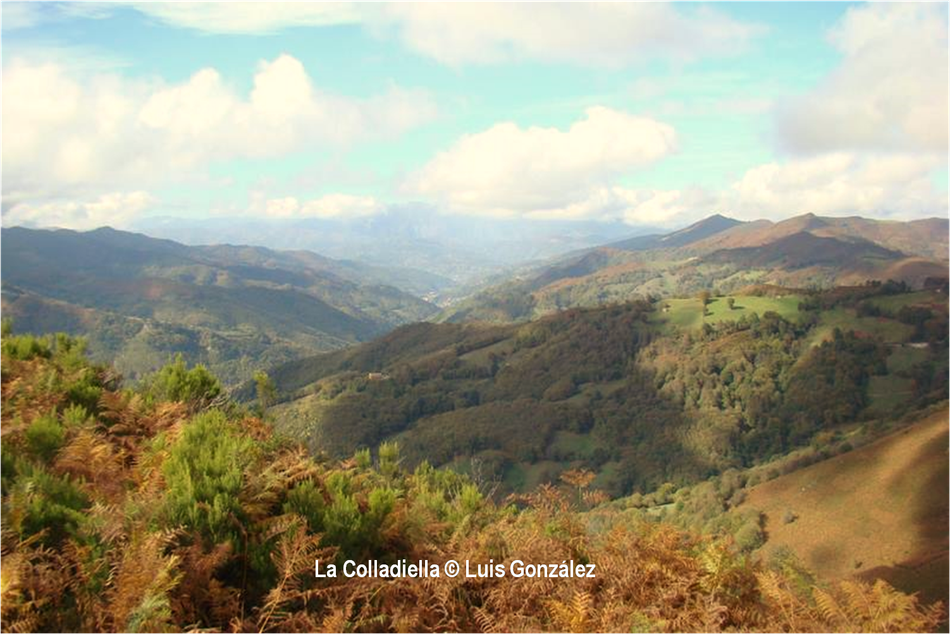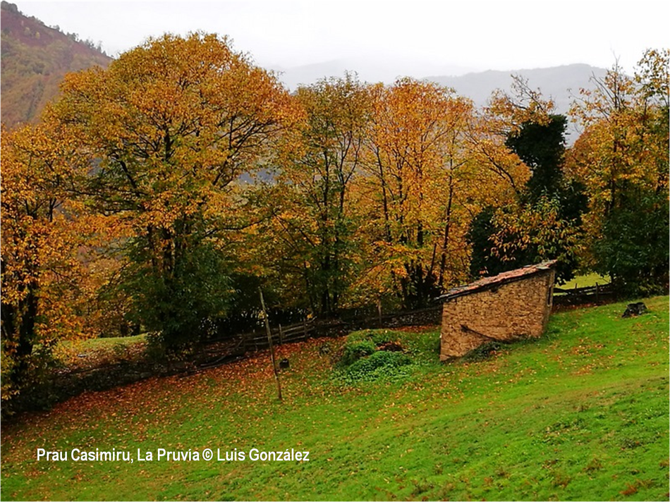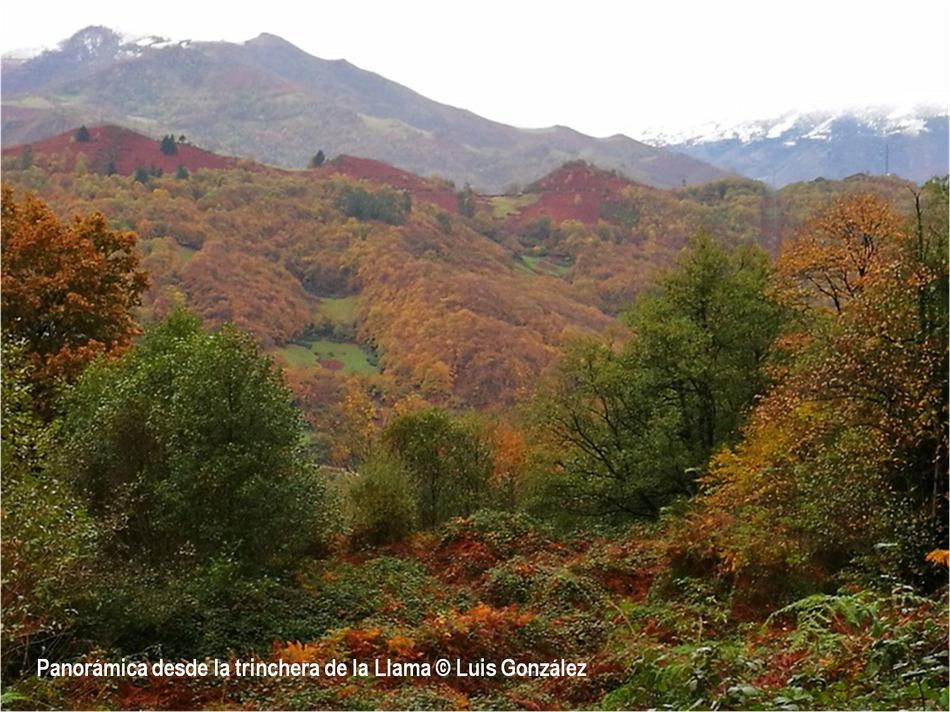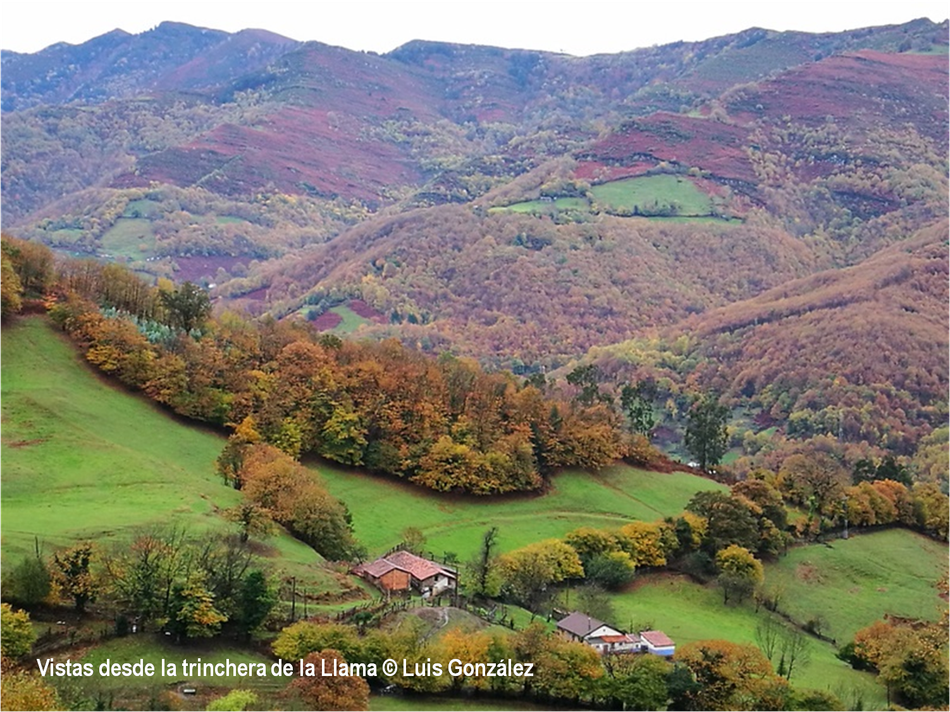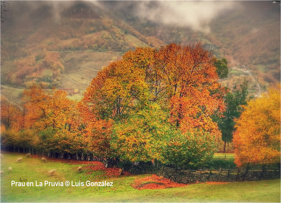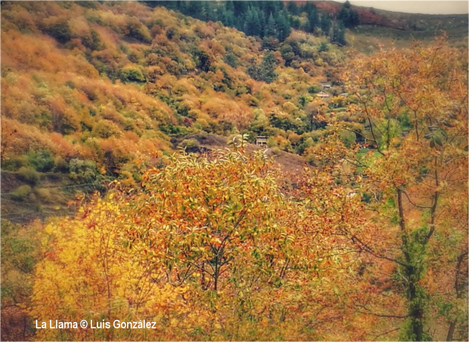 “El otoño es una segunda primavera, cuando cada hoja es una flor”, decía Albert Camus. Estas miradas de Luis González desde “sus” tierras de la Pruvía, la Rasa, la Berruga o la Llama lo ratifican. Los helechos se han vuelto pardos. Es el estampido inicial de los nuevos atavios vegetales. Los colores exhiben sus matices hermoseando la Colladiella, picu Cogollu o Polio. Enfrente desde la Llama, donde yacen tantos vestigios mineros, colores anaranjados y pinceladas impresionistas engalanan Longalendo.