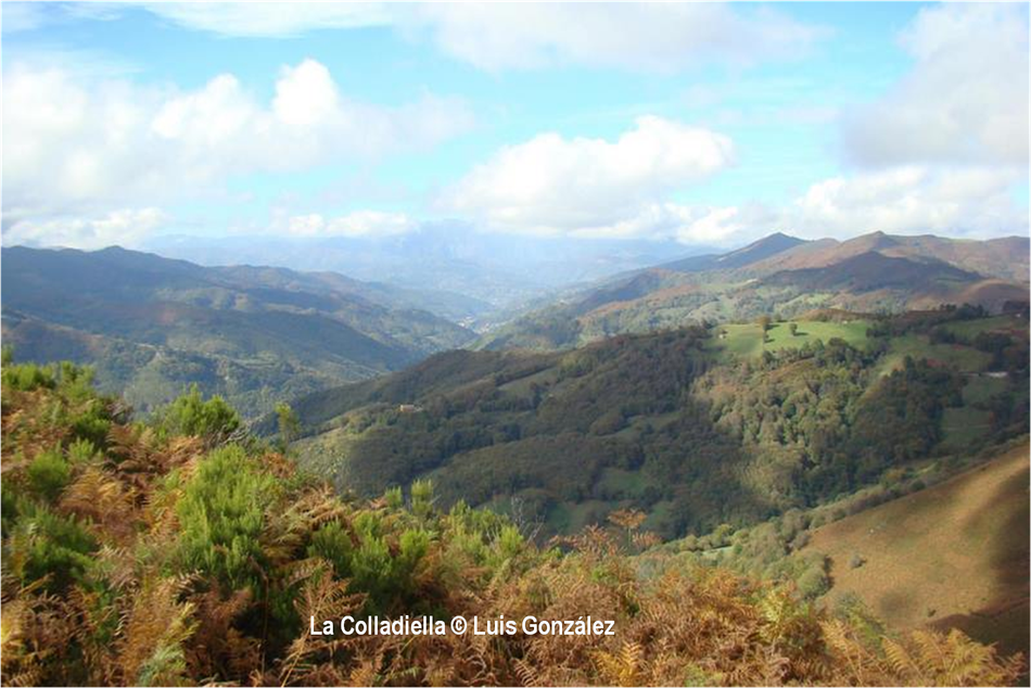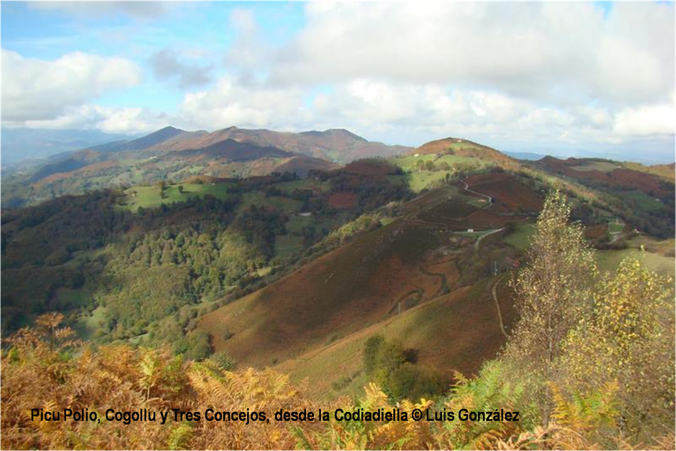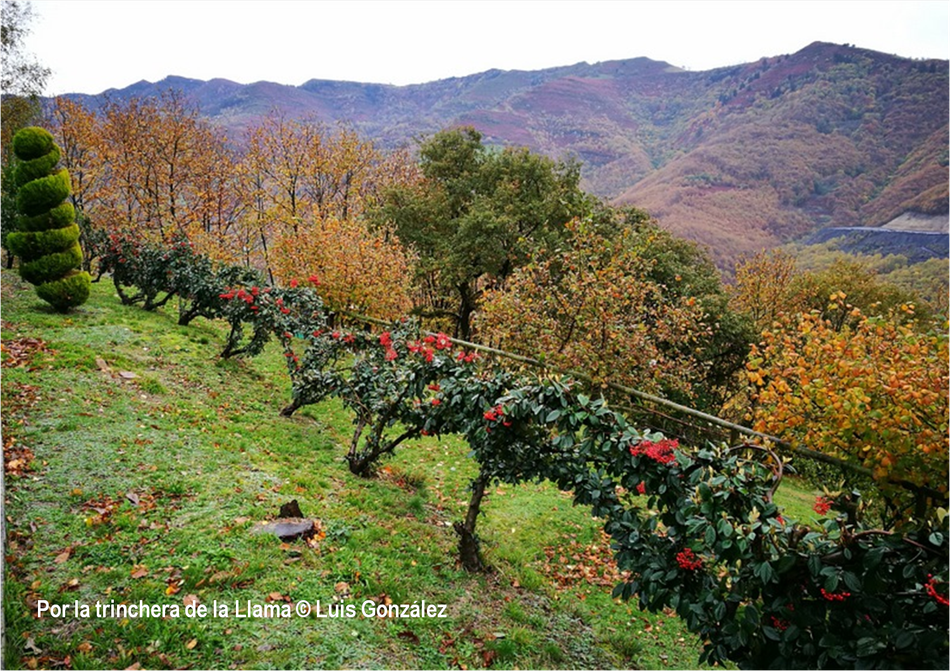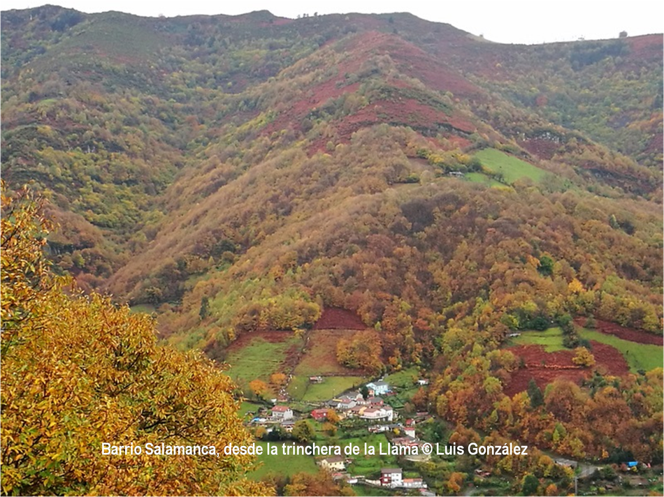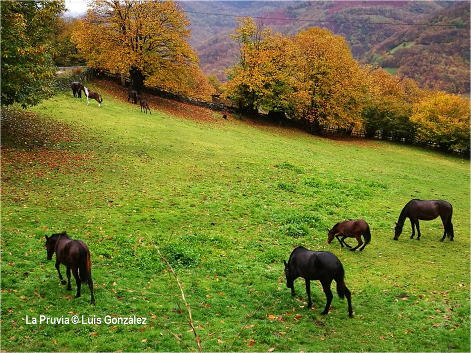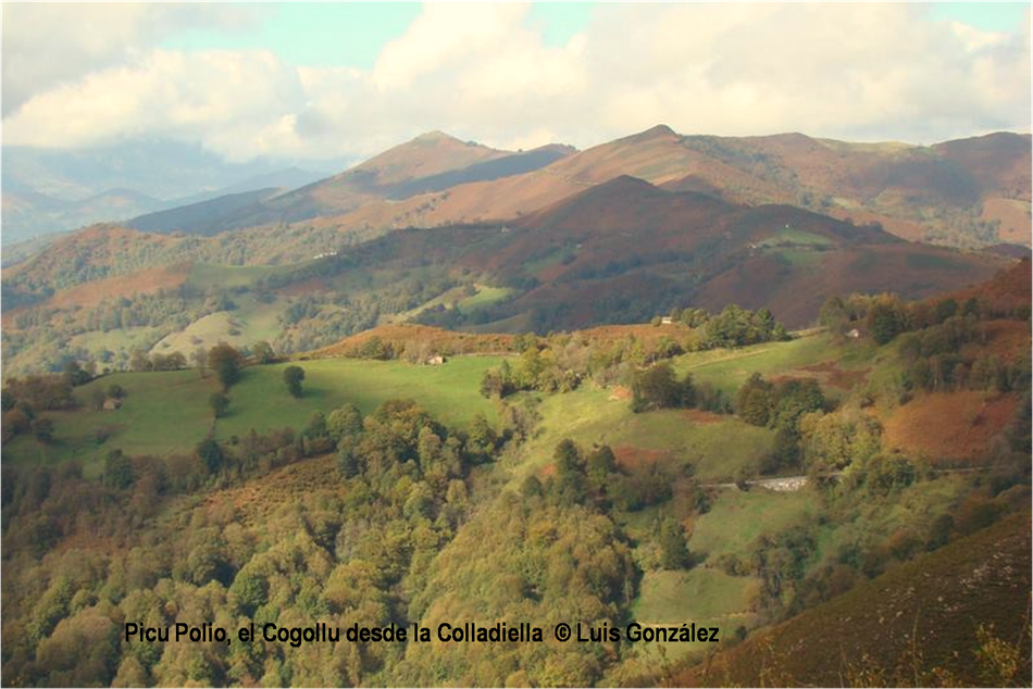 “El otoño es una segunda primavera, cuando cada hoja es una flor”, decía Albert Camus. Estas miradas de Luis González desde “sus” tierras de la Pruvía, la Rasa, la Berruga o la Llama lo ratifican. Los helechos se han vuelto pardos. Es el estampido inicial de los nuevos atavios vegetales. Los colores exhiben sus matices hermoseando la Colladiella, picu Cogollu o Polio. Enfrente desde la Llama, donde yacen tantos vestigios mineros, colores anaranjados y pinceladas impresionistas engalanan Longalendo.