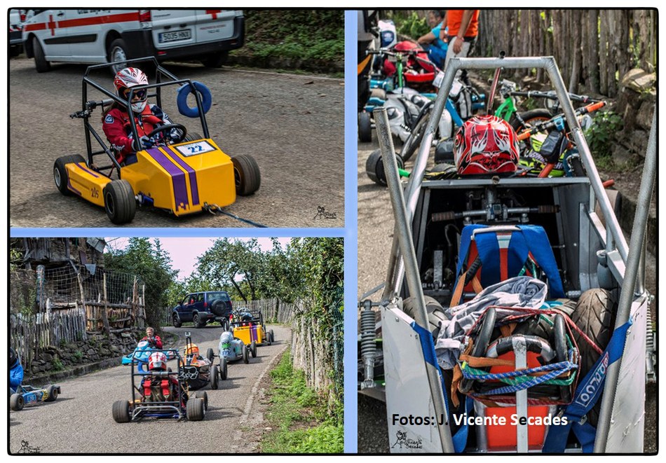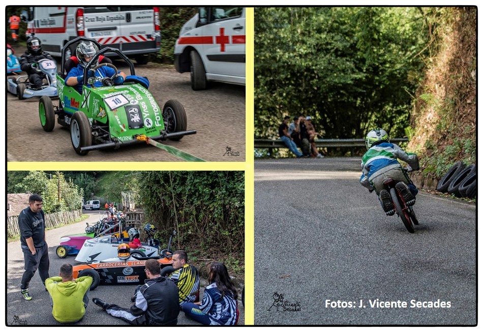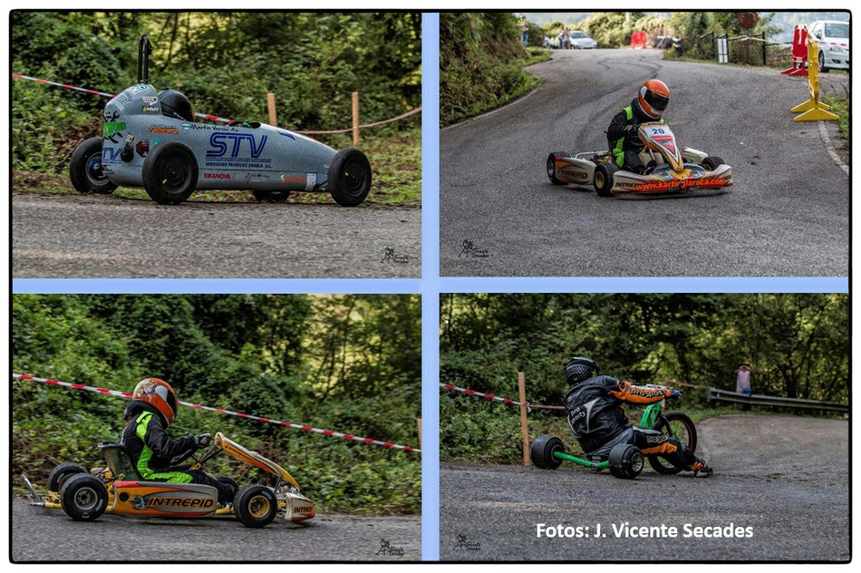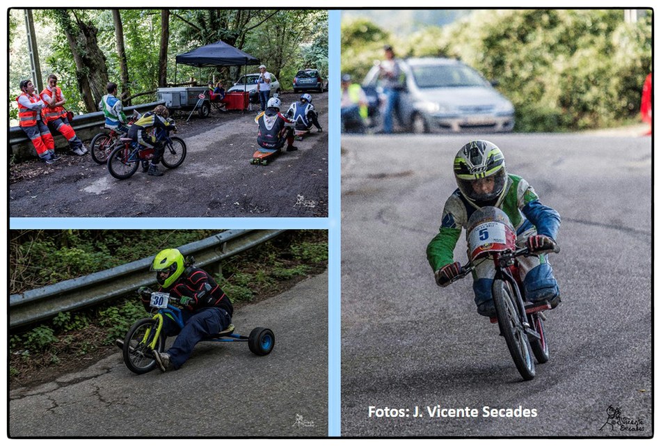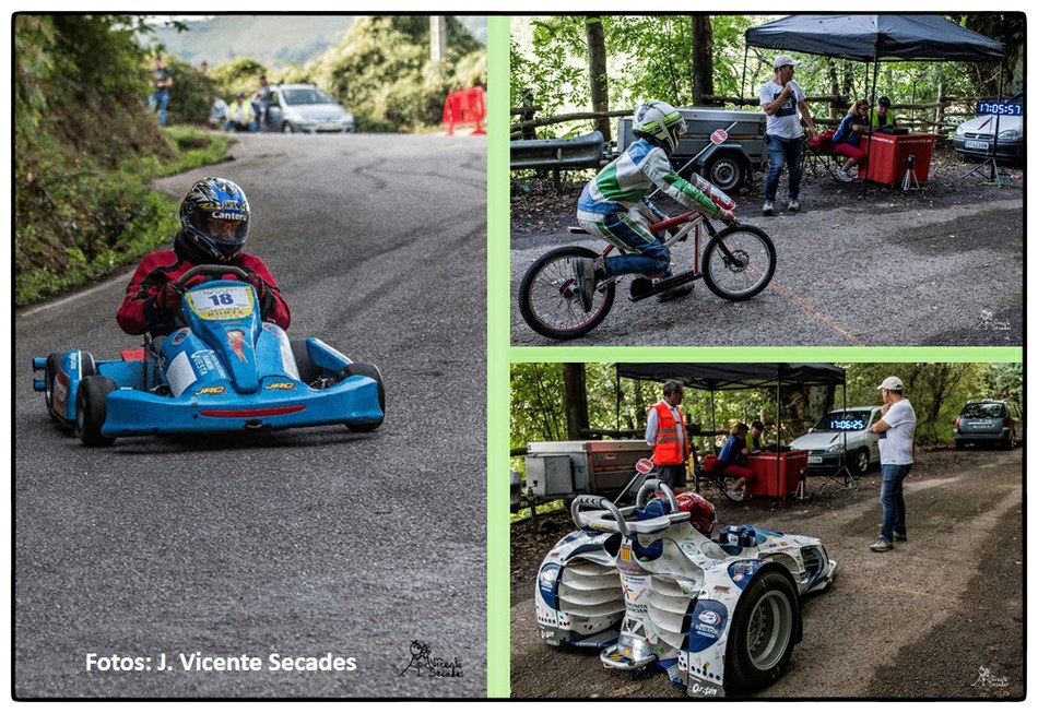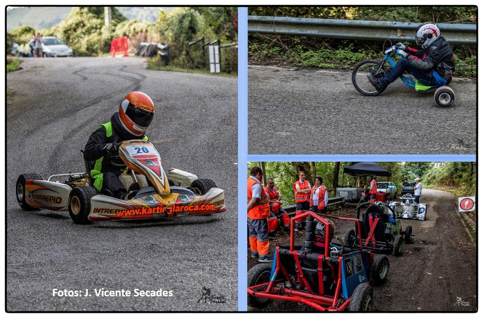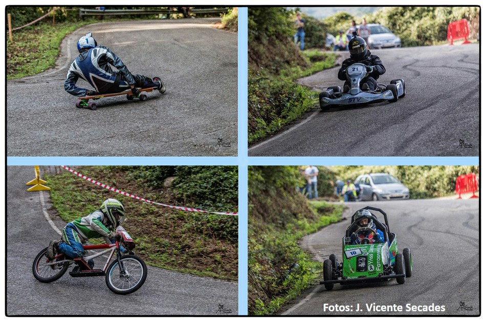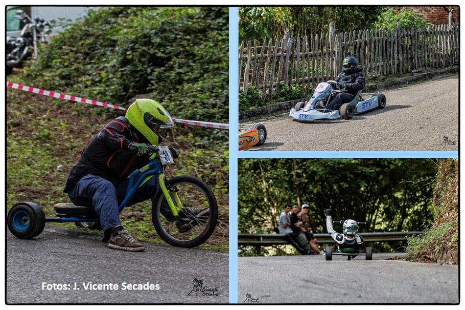 No se puede imaginar mejor pendiente y tan sobresalientes curvas como las dibujadas por la bajada de Tablao. Hubo tiempos en que lo más transitable eran los angostos caminos, tantas veces lodosos, o los inclinados planos vacíos de actividad minera. Tablao arriba, Villapendi y la Felguera abajo. Hoy demostración insólita de la fuerza de la inercia, la bajada a toda marcha la escenifican una retahíla de artefactos rodantes desbordantes de imaginación. Pero no es cualquier locura porque, aunque parezca una excentricidad, existe una Federación Española de Deportes de Inercia y su parangón internacional la FISD o Federación Internacional de Coches de Inercia. Coches de inercia, carrilanas o goitiberas, bicicleta de gravedad, monopatines de descenso, trineos de asfalto o triciclos de derrape invadiendo nuestras carreteras… Son las soapbox, gravity bikes, longboards, street luges or drift trikes… Suena más cosmopolita ¿verdad ? Pues sirva este completísimo álbum de José Vicente Secades, de la primera edición, para autentificar la presencia de una verdadera competición en nuestro valle a la víspera de la segunda edición a celebrar este fin de semana.