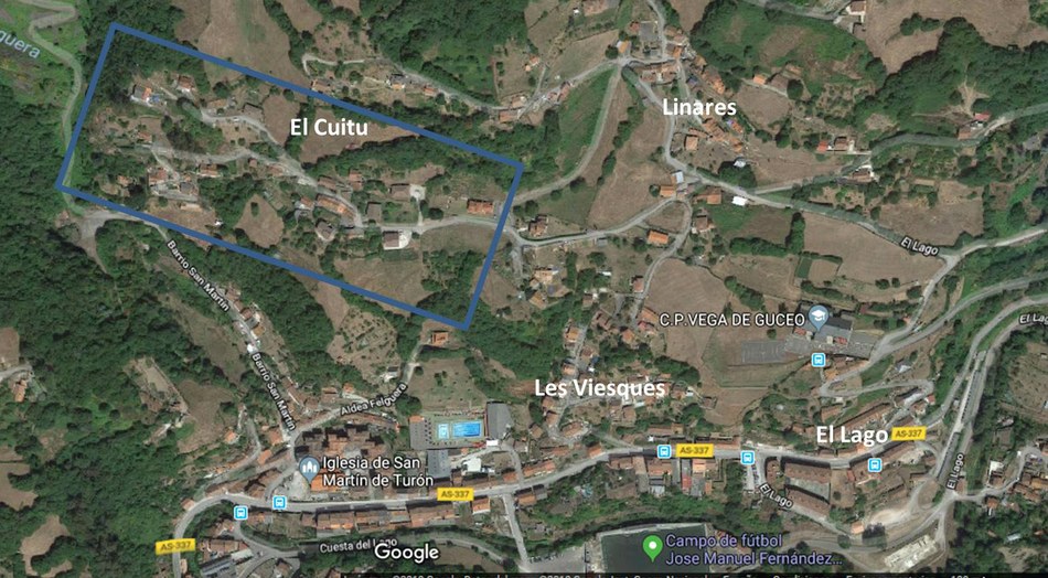 Los barrios, pueblos y aldeas turoneses nacieron adheriéndose a la propia sinuosidad del valle, yuxtaponiendo construcciones por el centro y brotando desparramados por las laderas. Cuando llega la noche una guirnalda de casas iluminadas, calladas y secretas adorna nuestros montes. La solana por su posición privilegiada siempre ha sido la más poblada y aún hoy, salvo excepciones, sigue teniendo un atractivo solariego. Luis González nos pasea por el Cuitu. Un apelativo que según Xosé Lluis García Arias, en su libro de toponimia asturiana, pervive en la palabra “cuetu” con el significado de “piedra, pedrusco, peñasco, colina peñascosa… Allí está nuestro Cuitu, cerca de Linares, divisando el centro de Turón, desde la Felguera hasta San Francisco pasando por las escombreras y el Pozu de San José. Sus casas remozadas, las viejas piedras recuperadas, los corredores y balcones, así como la talla más flamante de bancos y columnas dan testimonio de la vida que puebla sus caminos.